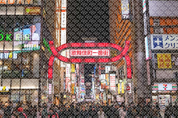 A symbol of tradition and culture. This image captures the Kabukicho at Night, a traditional Japanese wooden building that stands at the entrance to the city, symbolising the spirit of tradition and culture.
