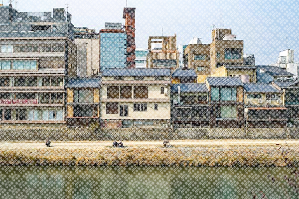A symbol of serenity and tranquility. This image captures the Kyoto River, a symbol of serenity and tranquility, flowing gently through the city, embodying the spirit of Japan's natural beauty.